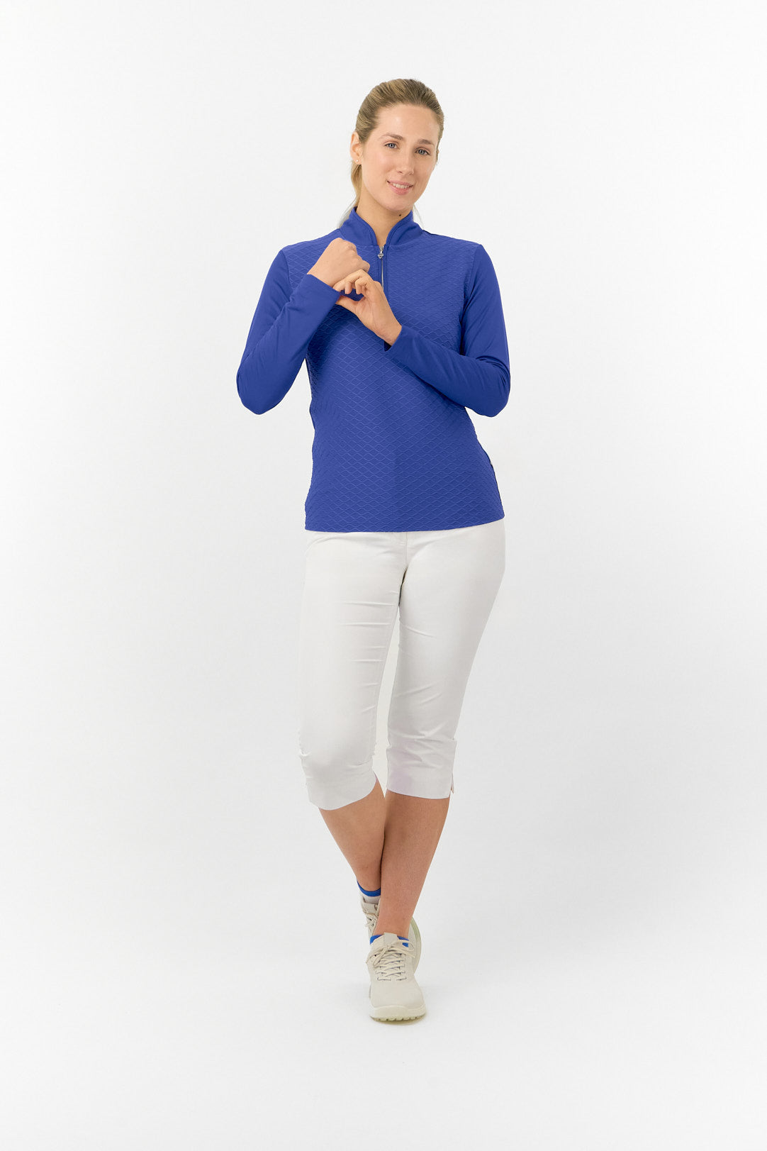 Introducing our Pure Golf Valley Cap Sleeve Yale Navy timeless Ladies Long Sleeve Mid-Layer, the perfect complement to our Pure Golf With Personality range. With its subtle textured finish, this piece elevates your style by adding a touch of refined sophistication.. Discover the key features below!