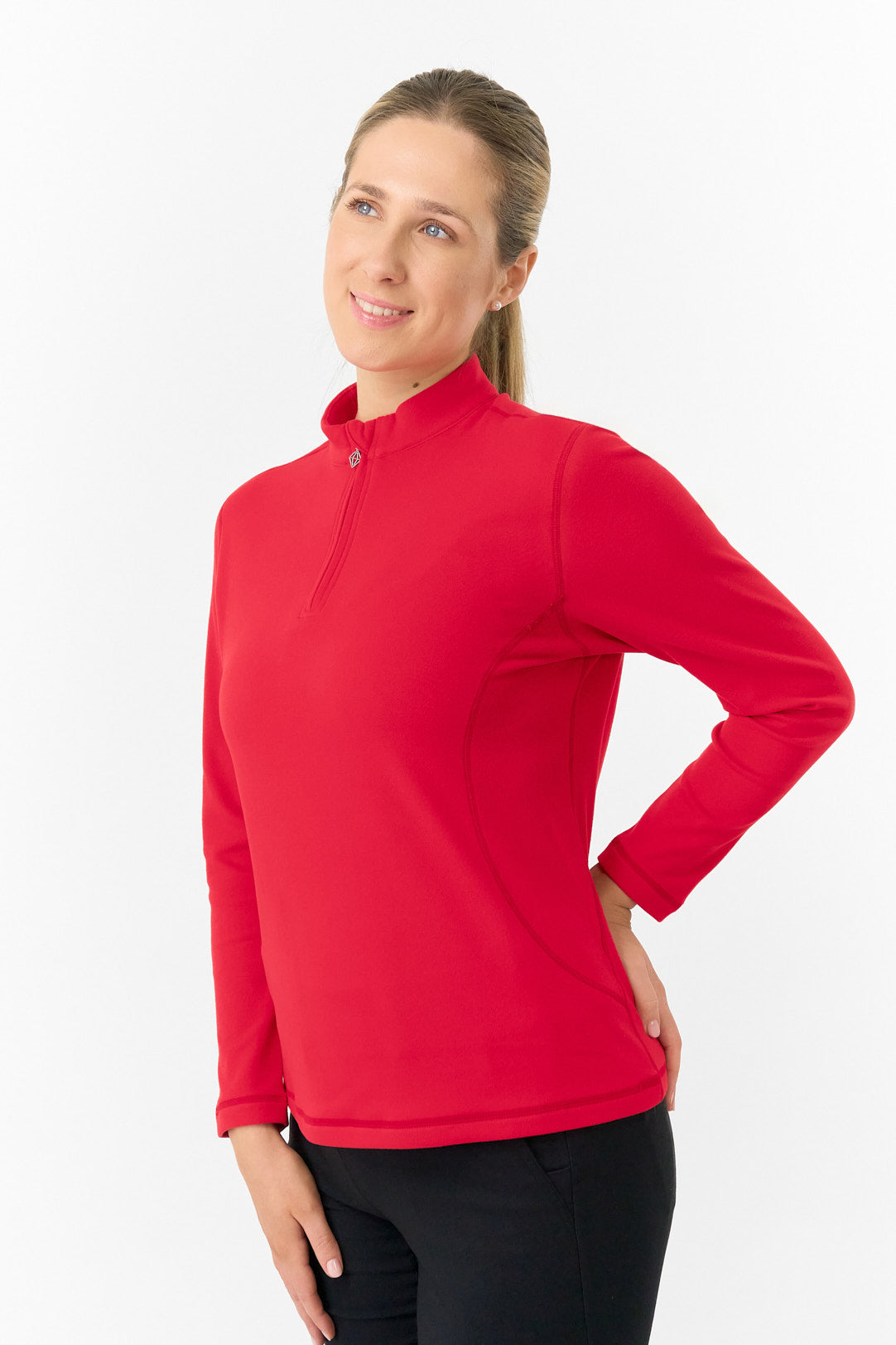 Pure Golf Ladies Iris Soft Fleece Golf Quarter Zip - Chilli Oil