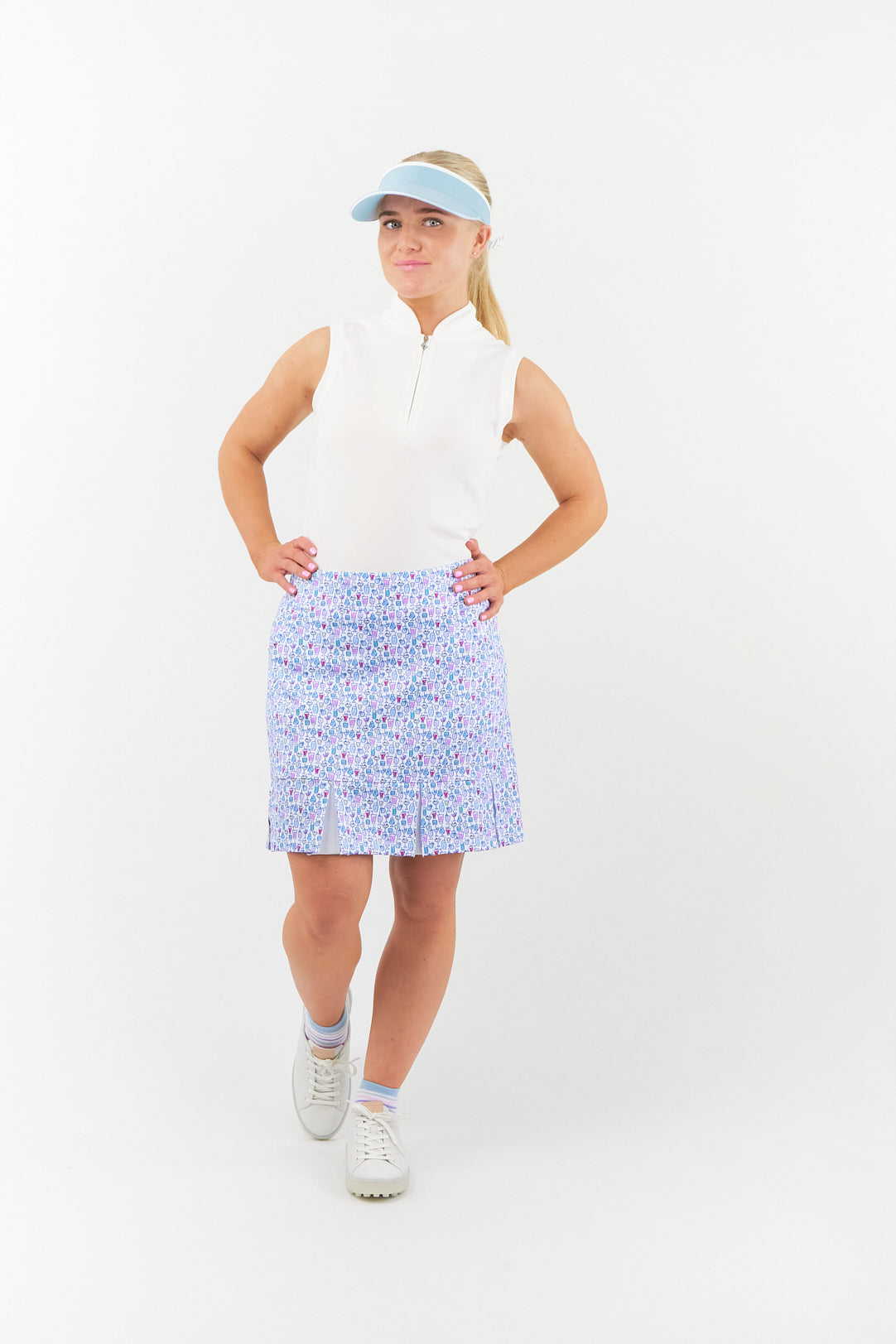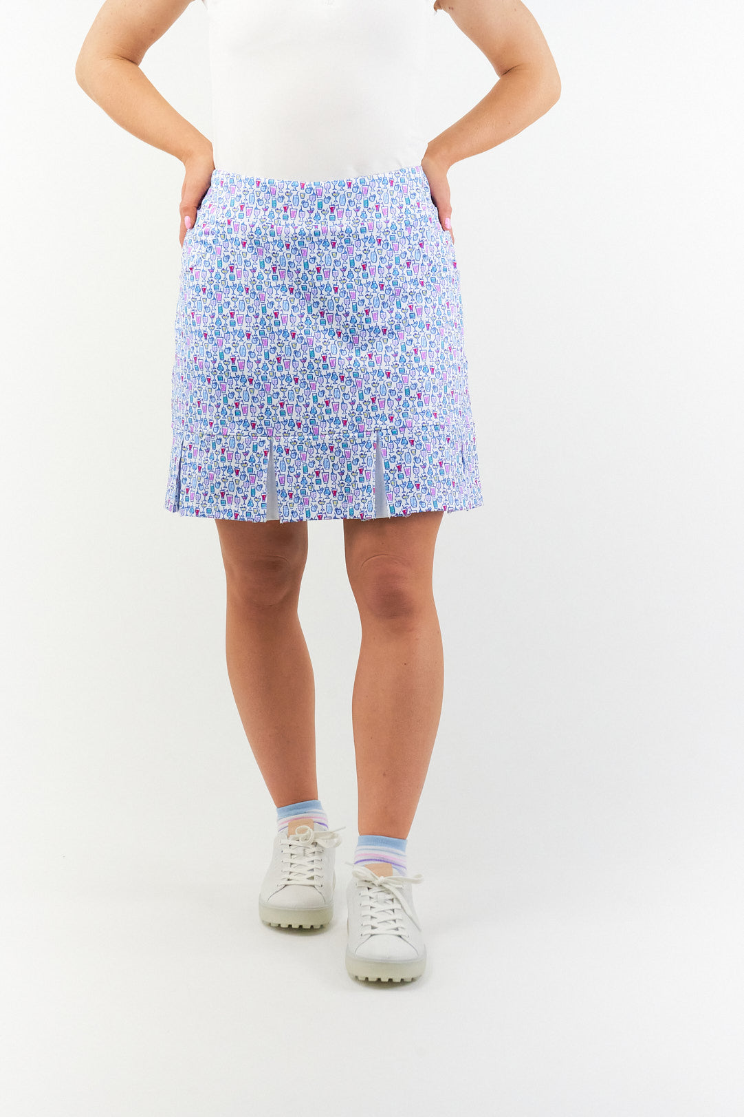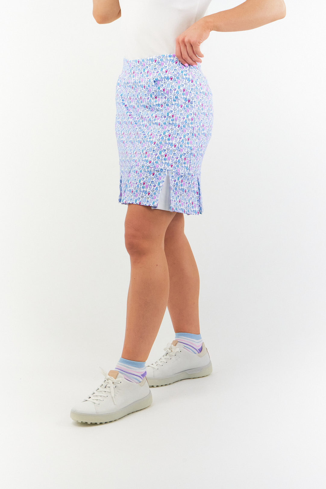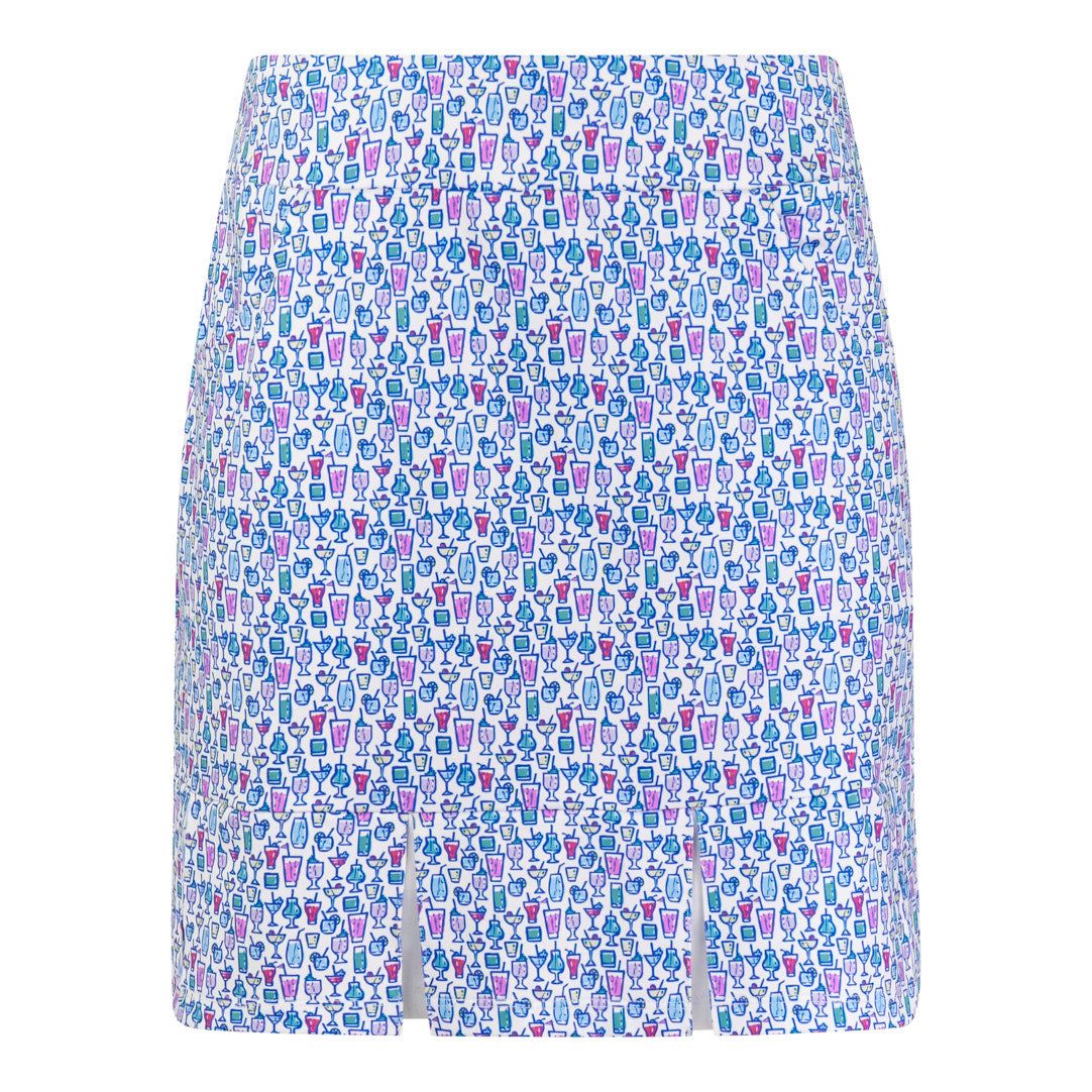 The Pure Golf Alda Pull-On Over Eighteen Boozy Golf Skort for Ladies is a fun print, featuring cocktail motifs in a subtle scale, perfectly complementing our essential color palette. This skort combines style with performance, offering a standout design and premium features. It's a top choice for golfers who seek both comfort and fashion on the course. Discover why the Over Eighteen Ladies Golf Skort is a favorite.