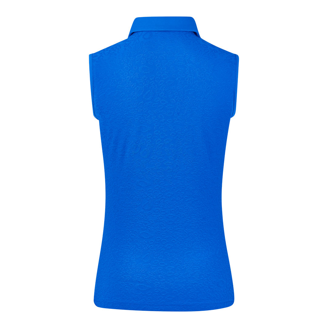 The Pure Golf Christy - Jacquard Royal Blue ladies sleeveless polo shirt perfectly complements the Pure With Personality collection,  allowing you to coordinate your outfit from head to toe. A must-have for women golfers, this piece lets you create a unique look with its subtle texture that showcases your personality and flair on the golf course. Don’t miss the chance to add it to your wardrobe.