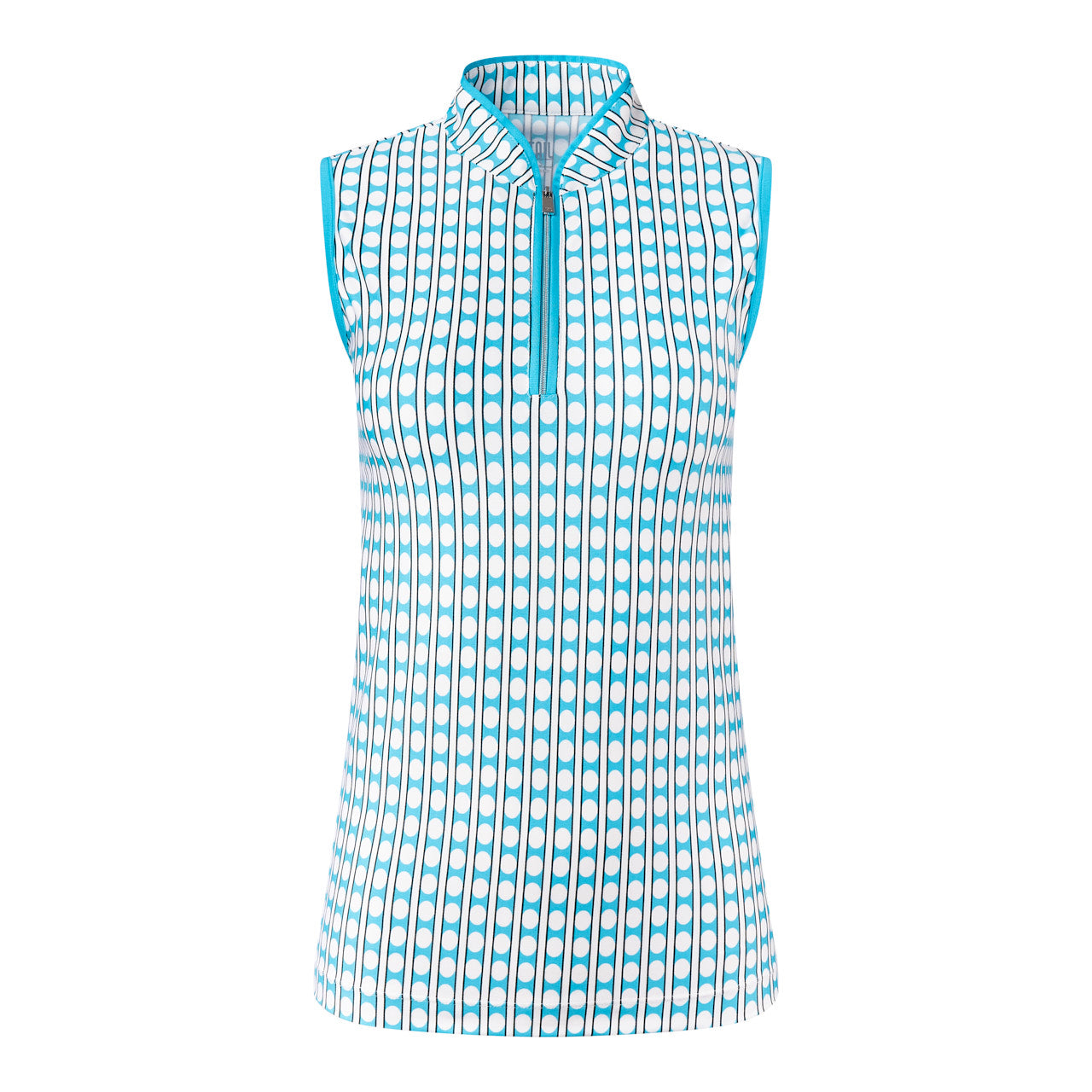 - Quarter Zip Sleeveless Top with Mandarin Collar & Blue Atoll Piping