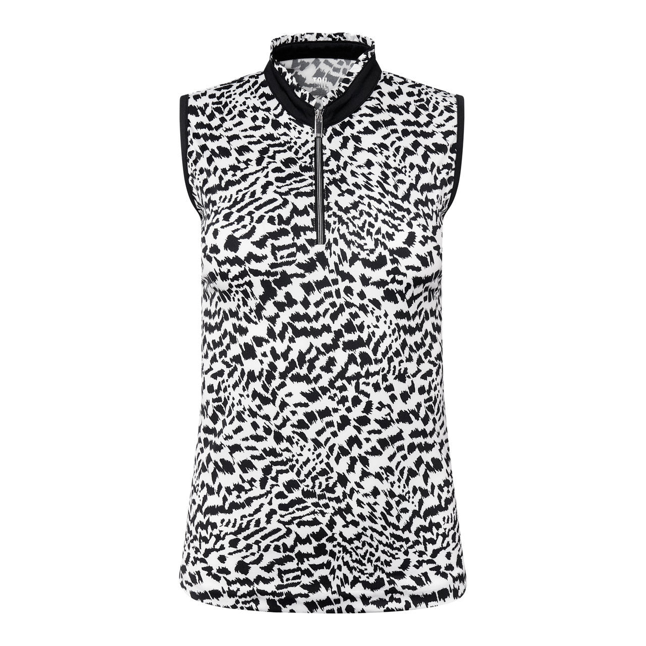 - Quarter Zip Sleeveless Top with Novelty Collar & Curved Hem