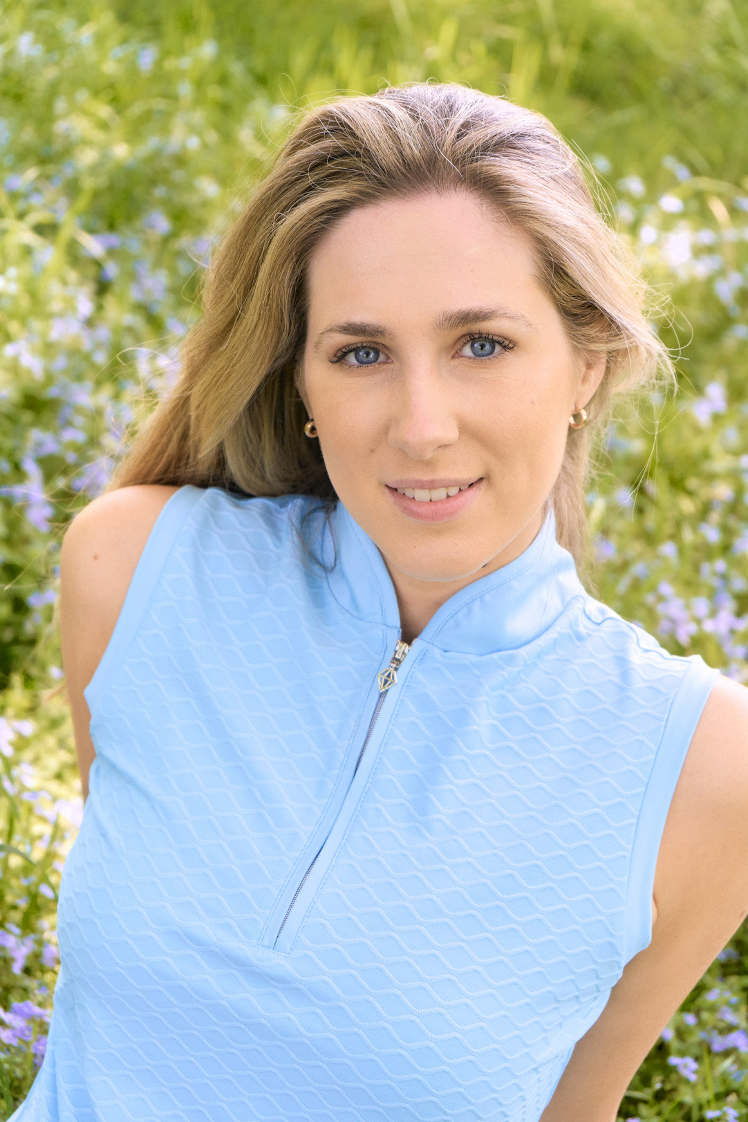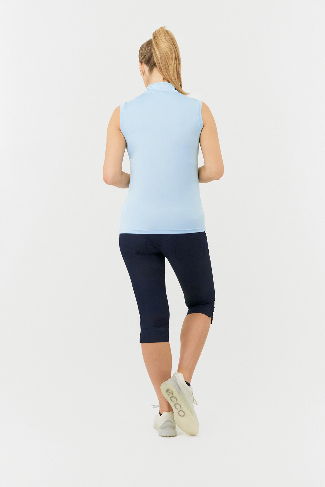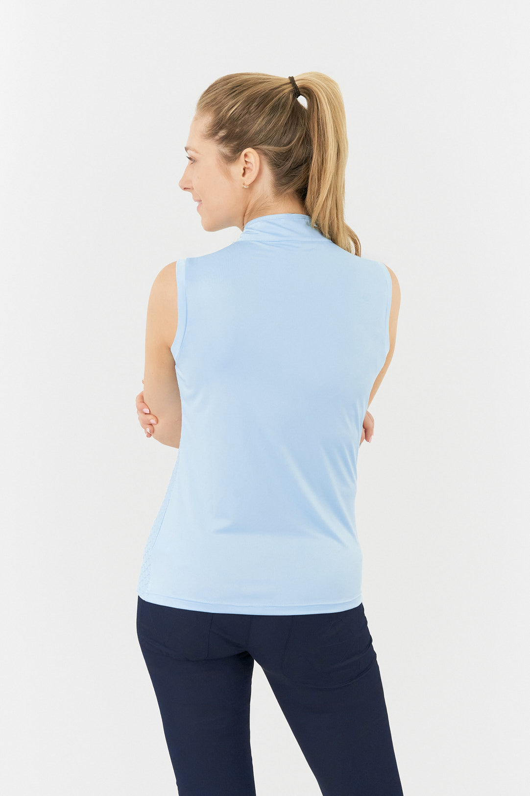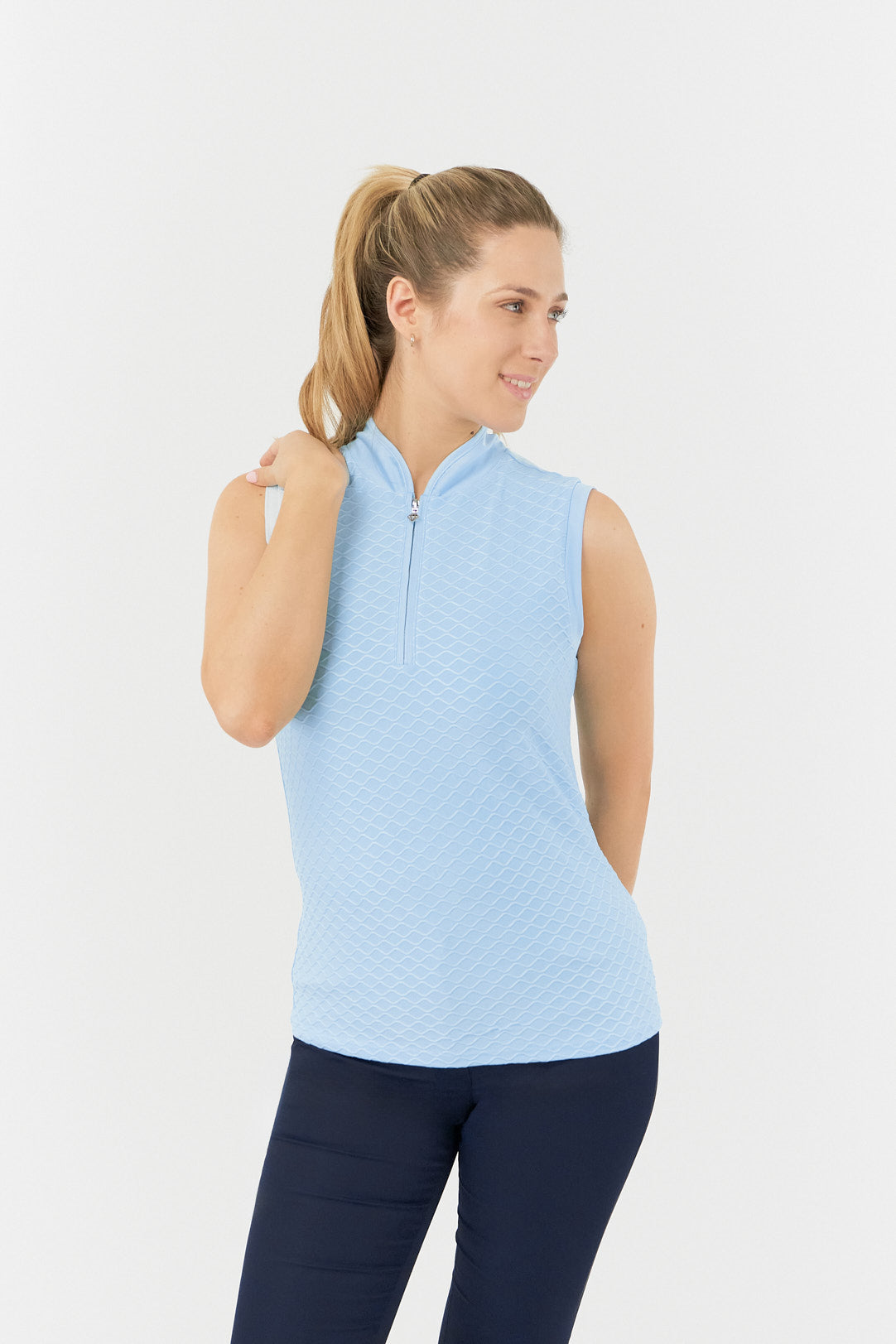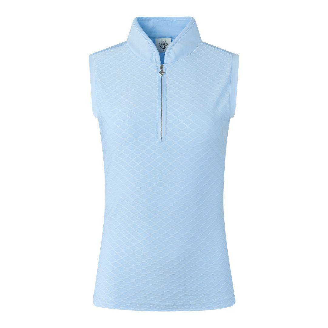 The Pure Golf Valley Pale Blue Women's Sleeveless Polo Shirt is a standout piece in a beautifully refreshing colour from our Pure With Personality range. Designed to complement the Pure Golf Essentials Collection, it allows for a flawlessly coordinated look. A must-have for stylish female golfers, this sleeveless polo showcases a subtle yet refined texture, letting you exude confidence and personality on the course. Effortlessly chic and endlessly versatile, this timeless piece is the perfect addition