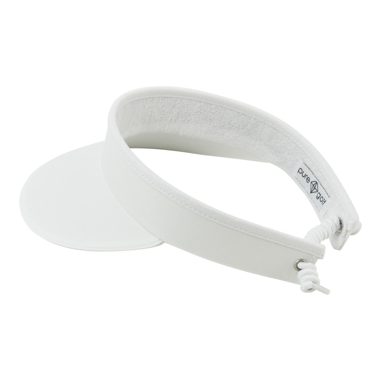 Protect your eyes from the sun & keep your hair off of your face, with this attractive ladies golf visor. Constructed with quick-drying fabrics and stylish design to protect you on & off the golf course. The visor comes in one size fits all design with an elasticated cord at the rear to hold it securely in place, it also features a concealed magnet & comes with a sparkly diamond golf ball marker! The Headband features a soft lined absorbent towel.