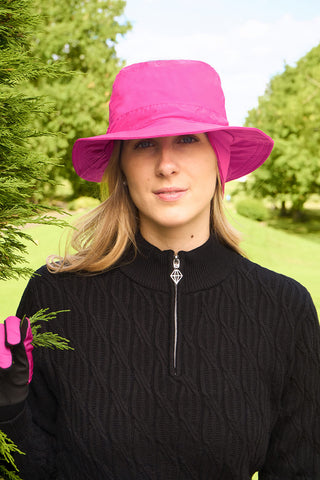 Surprizeshop Ladies Waterproof Bobble Ladies Golf Hat - Hot Pink