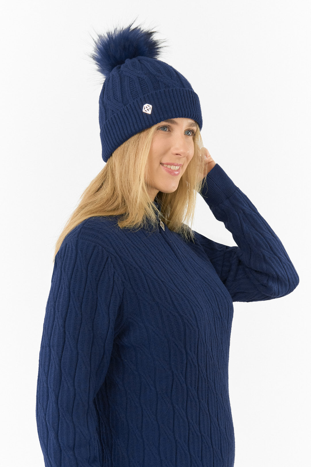 - Outer - 49.3% Viscose, 27.7% Polyester, 23% Nylon. Inner, Pom - 100% Polyester