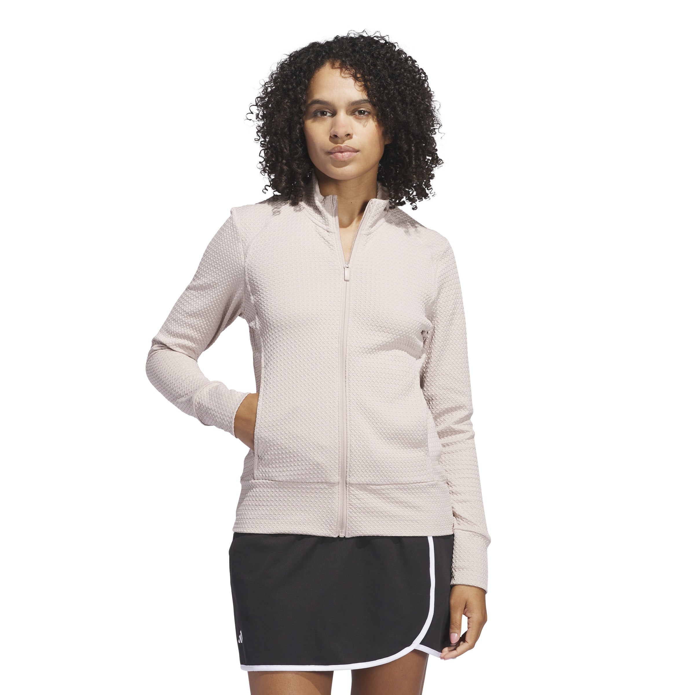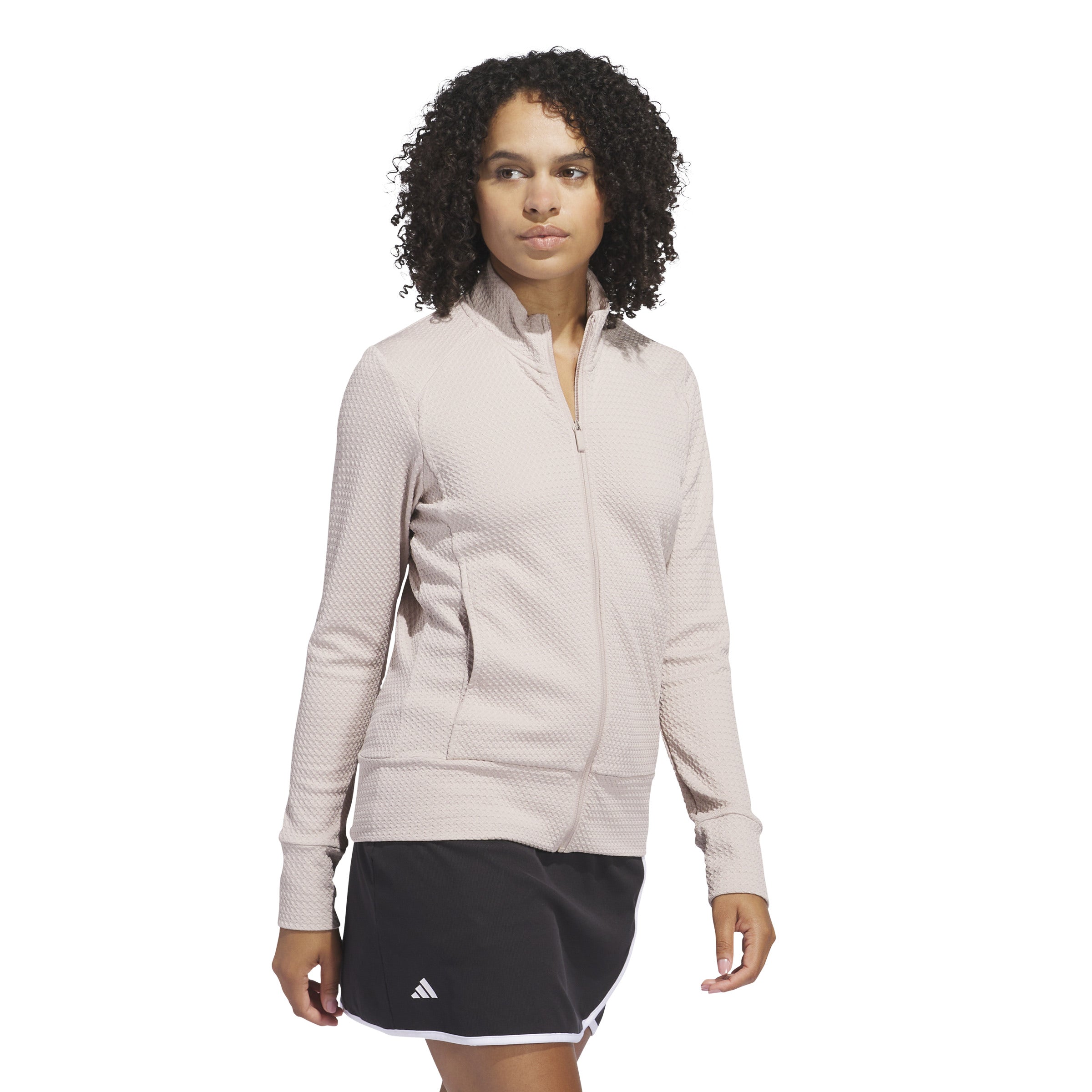 A transitional layer built for comfort on the go. This lightweight golf jacket in wonder taupe features waffle-knit panels for breathability and zip pockets to stash your essentials. Whether teeing off or putting for par, its stretch fabric offers full mobility to play your best. This product is made with at least 70% recycled materials. By reusing materials that have already been created, we help to reduce waste and our reliance on finite resources and reduce the footprint of the products we make.