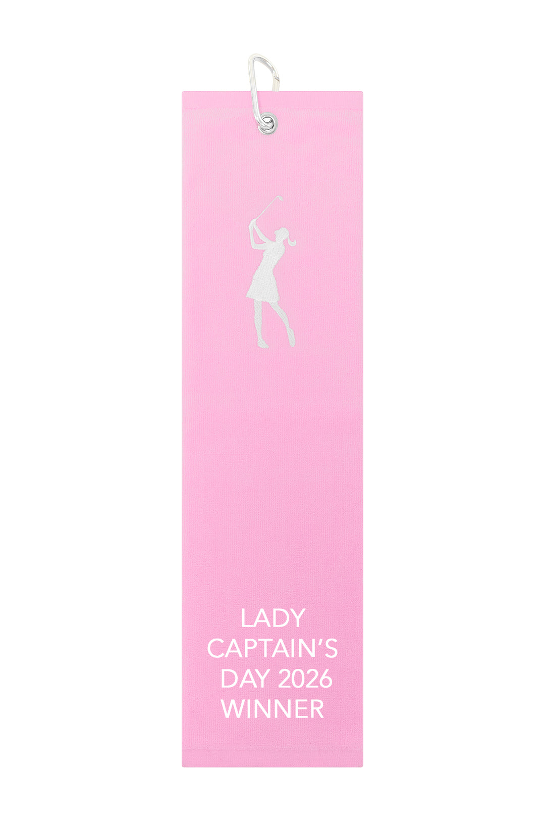 Our embroidered "Lady Captain's Day Winner 2026" tri-fold golf towels make the perfect prize for the winner of your Lady Captains tournament.