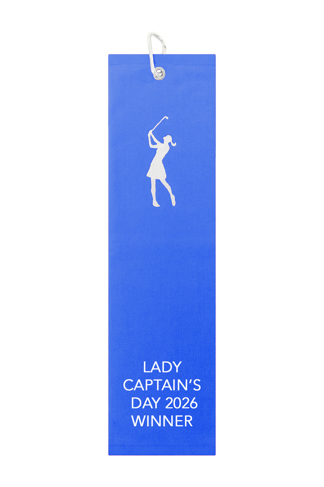 Our embroidered "Lady Captain's Day Winner 2026" tri-fold golf towels make the perfect prize for the winner of your Lady Captains tournament.