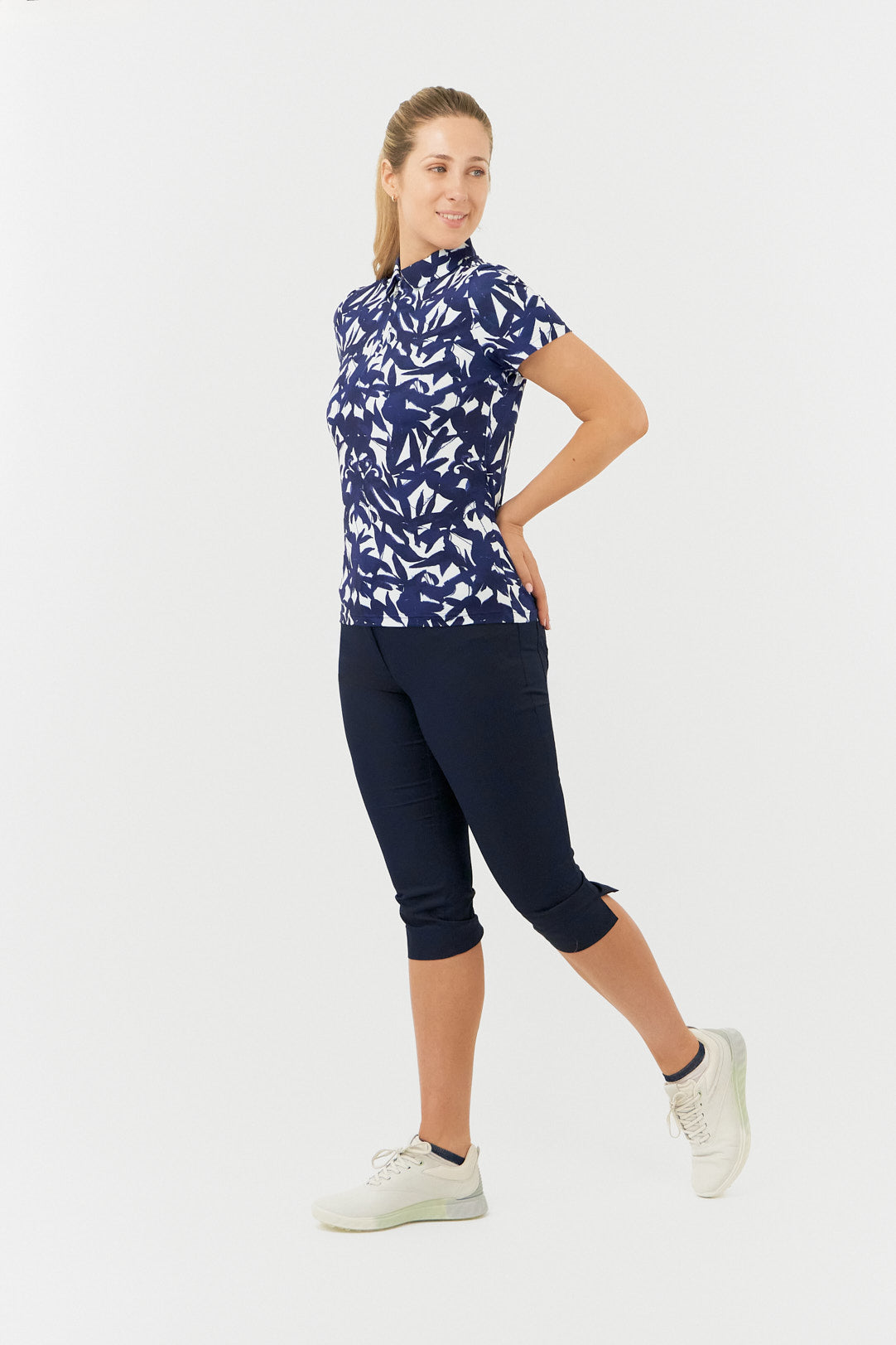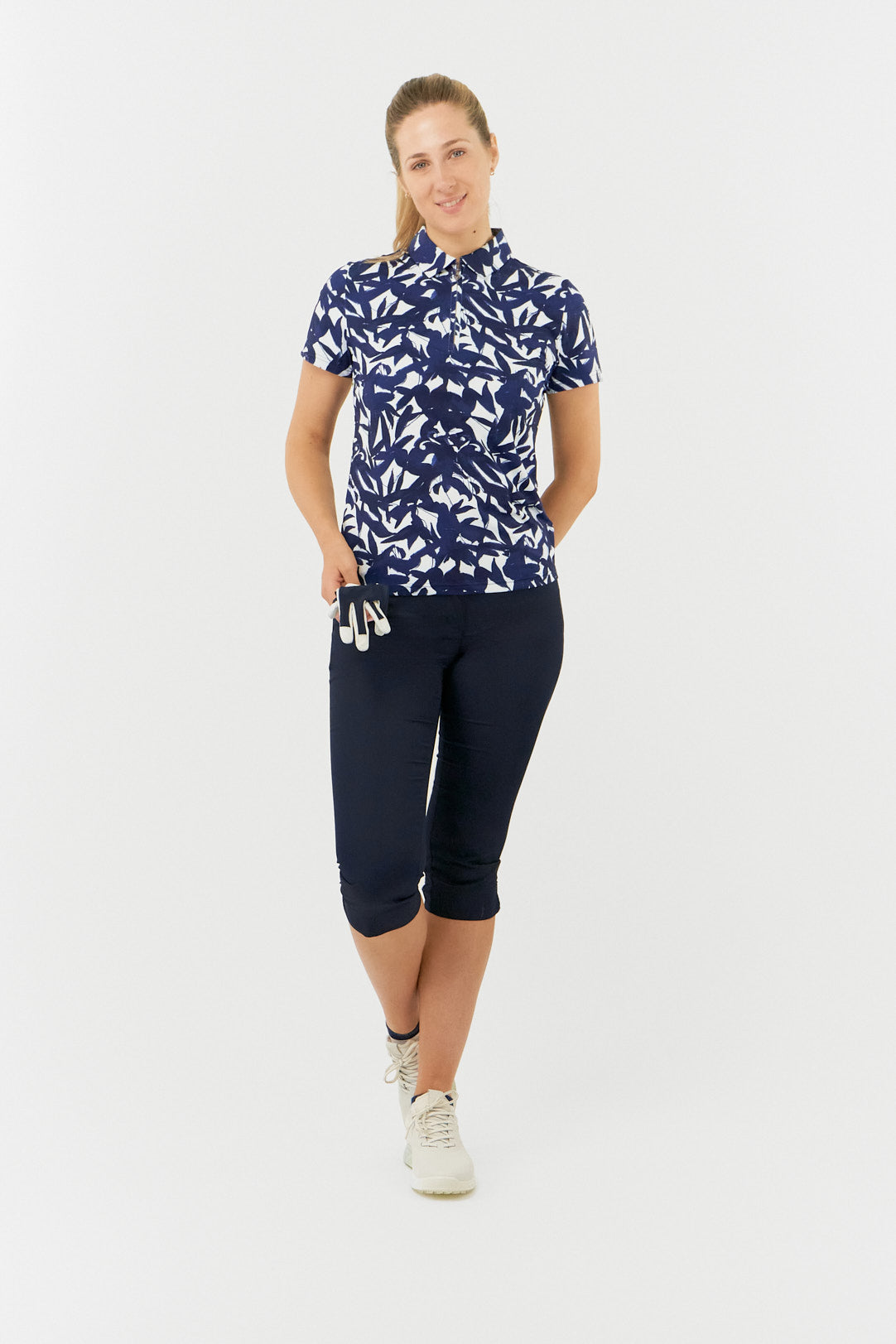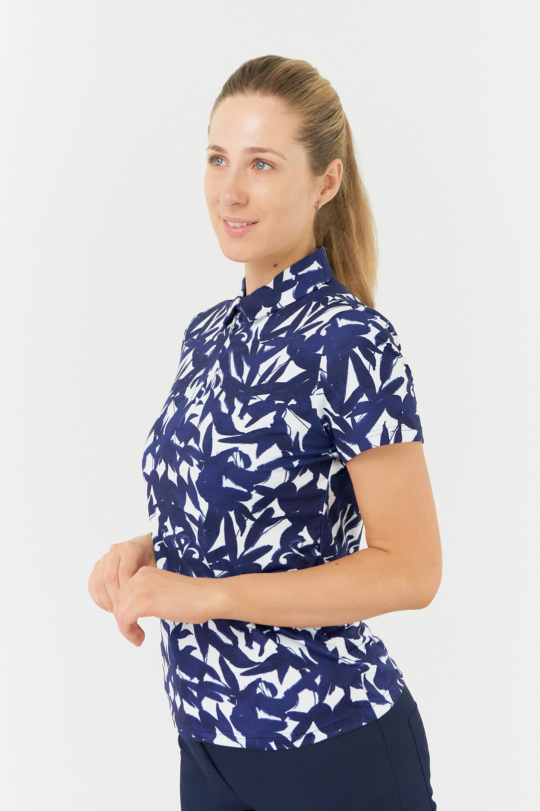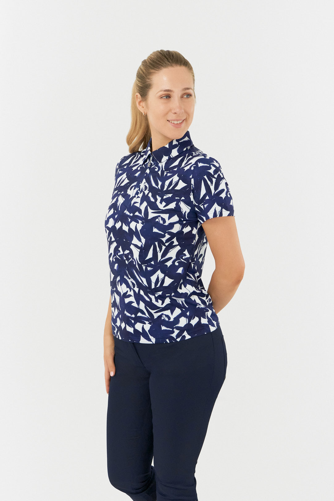 Discover the Amity Short Sleeve Ladies Golf Polo Shirt in wild peony Navy, the ultimate combination of fashion and function for the savvy golfer. This all-over print polo shirt makes a bold statement on the course, with a variety of features designed to elevate your golf game. Here's what makes the Amity Polo Shirt an essential addition to your golf wardrobe: