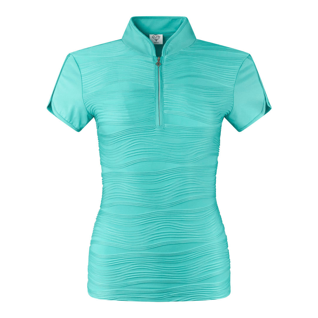Cove is an elegant and luxurious cap sleeve ladies golf polo shirt. Also available in a cap sleeveless version and a choice of colours. Part of Our Pure With Personality Collection - plain colour polo shirts with added style, detailing and luxury- still at exceptional value.  With a beautiful textured front.