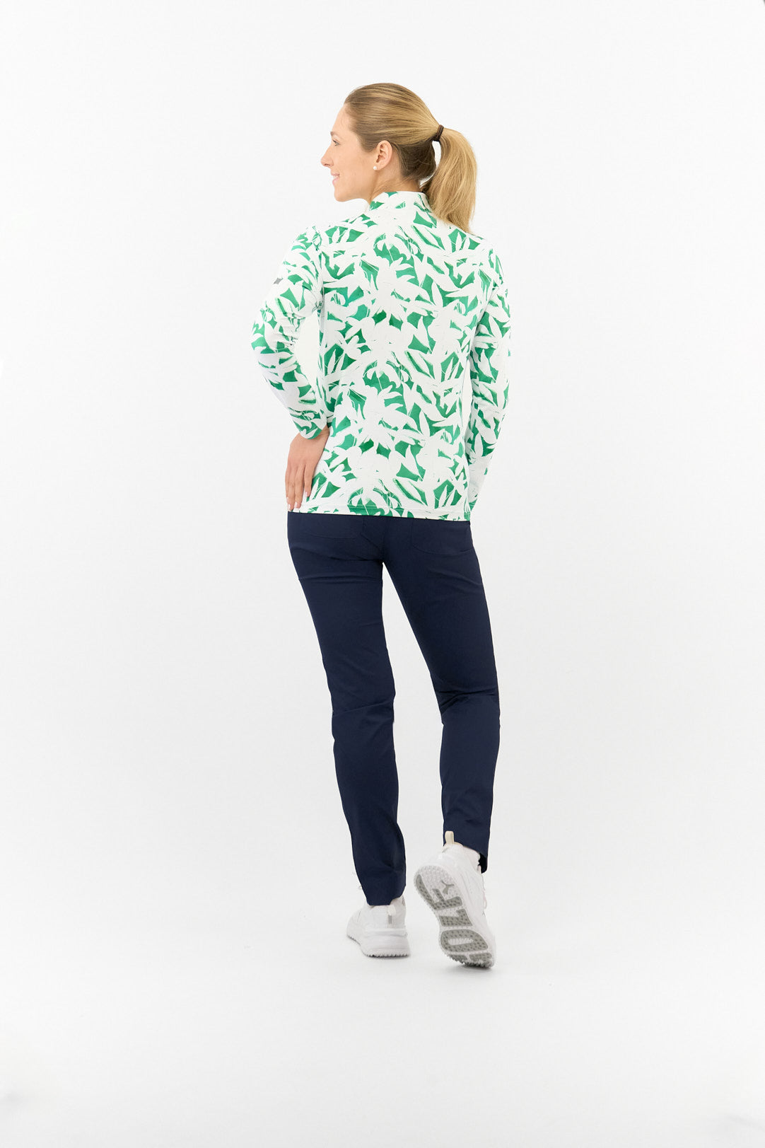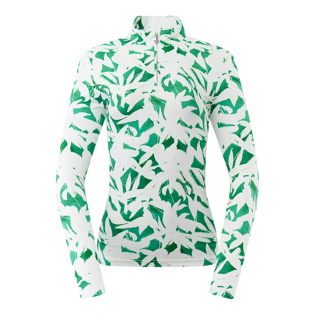 Serenity Long Sleeve Ladies Golf Zip Top - Wild Peony Emerald